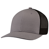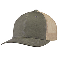 8D017M   Duck Canvas / Polyester Mesh-6 Panel Constructed Pro-Round (Mesh Back)-Deluxe buckram laminated front panels with Pro-stitch-Slightly-curved peak with 8 rows of stitching-Plastic adjustable back strap (S1)