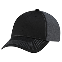 4K867M   Polycotton / Polyester Heather-6 Panel Constructed Full-Fit-Buckram laminated front panels with Pro-Stitch-Pre-curved peak with 8 rows of stitching (P1)-Self cloth/elastic back strap with tuck-in end and velcro closure (S28)